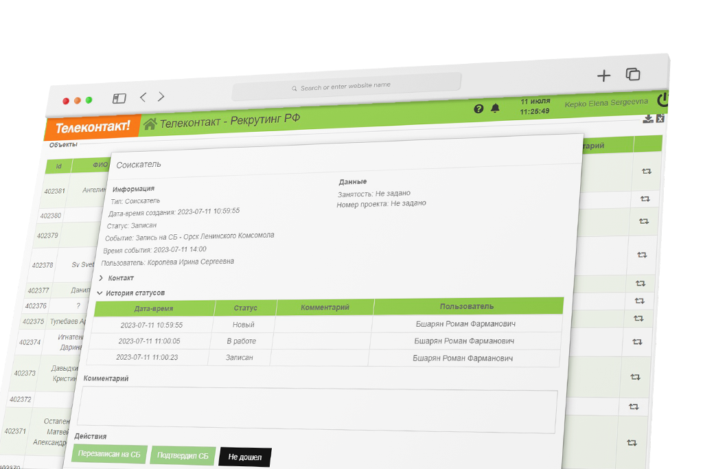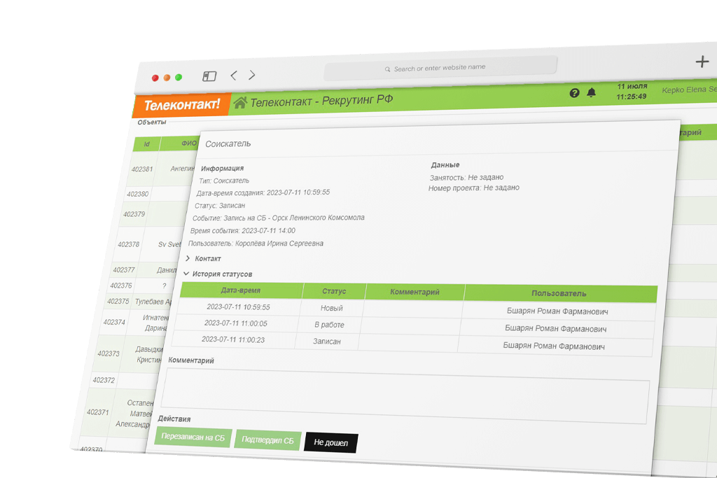 • Фиксация соблюдения графика операторами, визуализация расхождений • Дашборд для онлайн контроля нахождения оператора в смене
